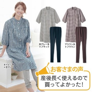 表裏で異なるチェック柄がさりげないおしゃれを演出するダブルガーゼワンピース。水仕事もしやすいロールアップ仕様。