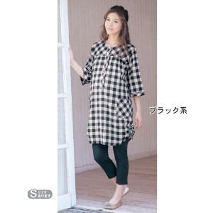 表裏で異なるチェック柄がさりげないおしゃれを演出するダブルガーゼワンピース。水仕事もしやすいロールアップ仕様。
