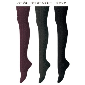 凹凸感のあるひし形模様を縦に流したニットタイツで、ボリューム感を持たせながらも足元はすっきり。コーデしやすいカラーを選びました。