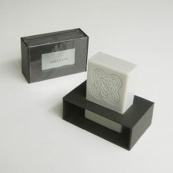 植物から生まれた成分で出来ている固形の芳香剤です。パッケージがそのままフレームになり、ソープを立てられます。